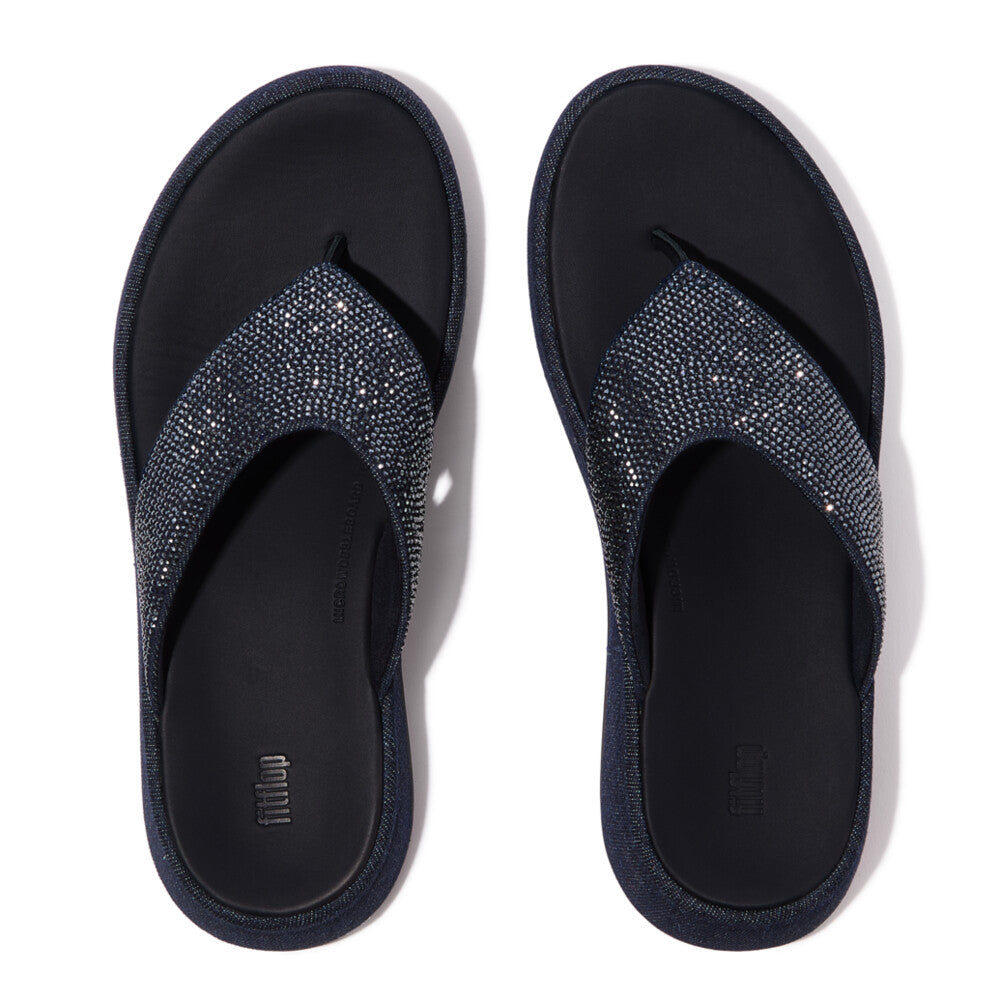 Signature comfort meets standout styling. A great way to prove denim works for summer? Our F-MODE sandals. Their easy, slip-on silhouette showcases the timeless appeal of classic denim, elevated with shimmering crystal embellishments. But it's not all about looks; they're built on our legendary Microwobbleboard™ cushioning for all-day comfort, with triple-density support designed to reduce muscle fatigue. The result? Stylish sandals that with your body, not against it – whether you're strolling through the city or enjoying a weekend getaway.