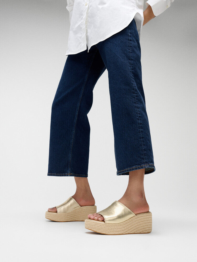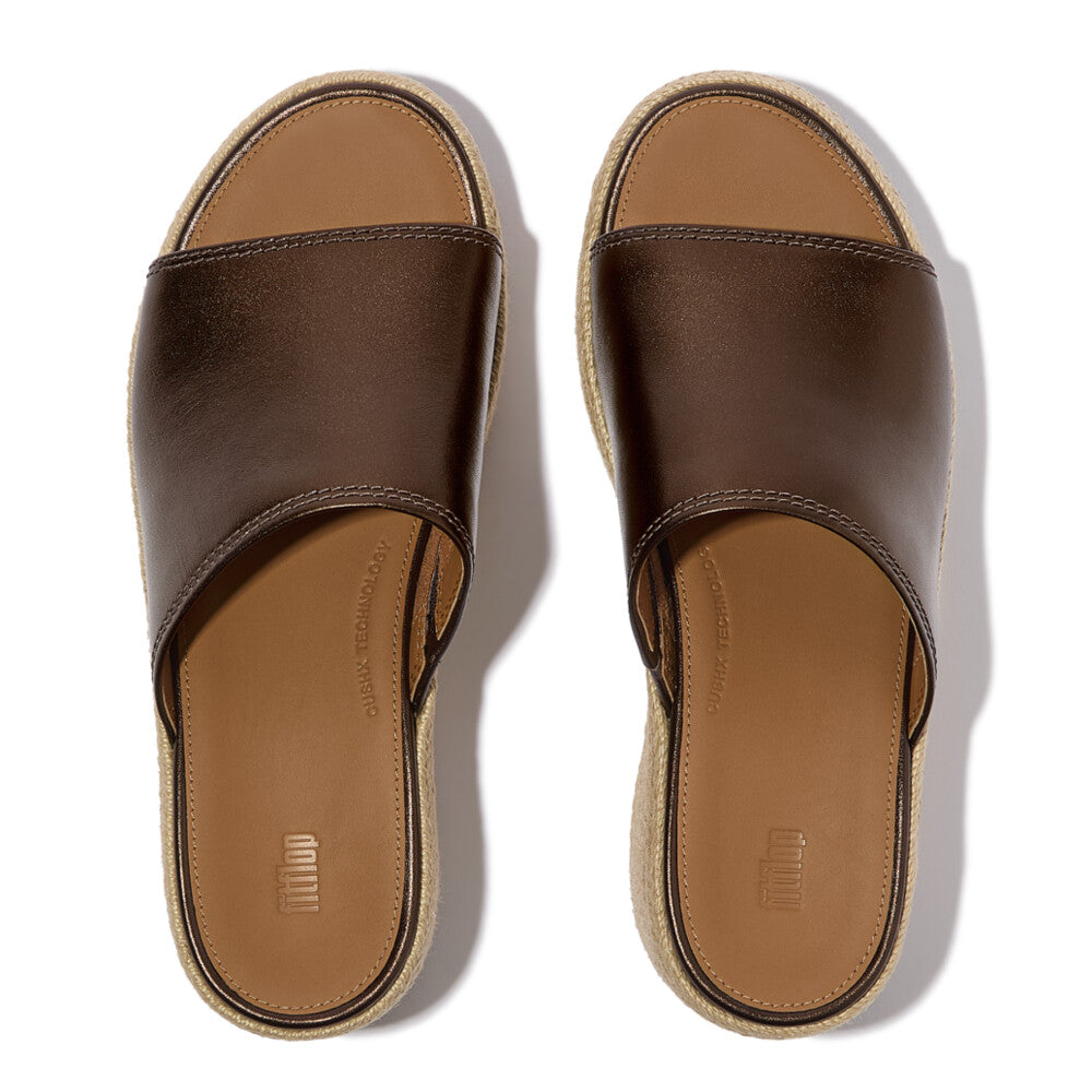 Modern and refined, our PlatFForms are possibly the world’s most comfortable high heels. Soft, light, superbly cushioned. This chic espadrille slide teams a simple upper with a classic high-wedge sole, wrapped in natural jute for summery vibes. Crafted in shimmering metallic leather, adding a shot of glamour to your look. Leather footbeds enhance comfort and foot coverage is generous. On our CushX™ midsole, biomechanist-designed for a sneaker feel in heeled styles (you can walk all day in these).