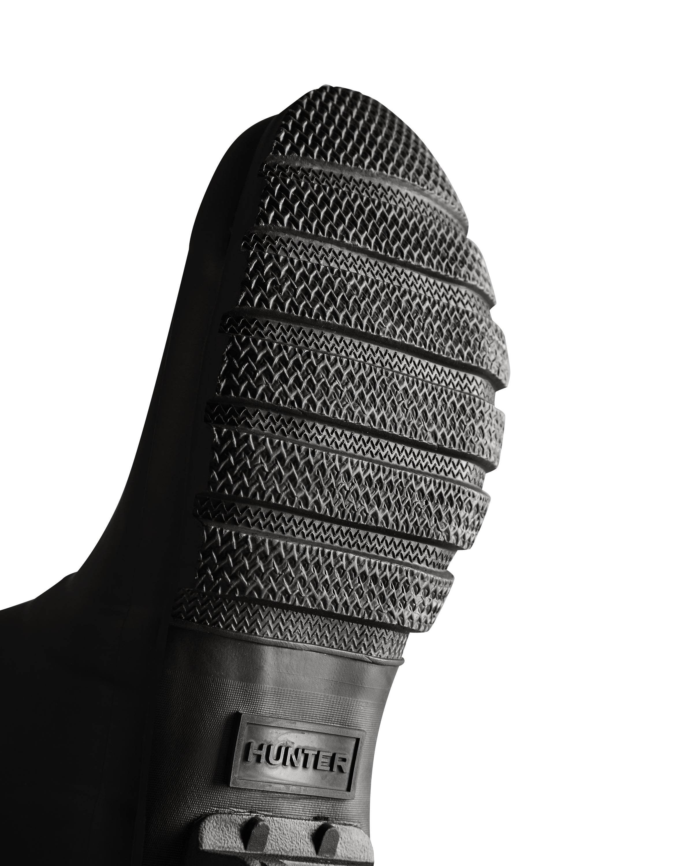 The Hunter Original Tall Boot has now been updated with the iconic Hunter tri-colour logo on the backstrap. Formed of natural rubber, each pair is handcrafted from 28 parts and assembled over three days on an aluminium last bespoke to Hunter, before being vulcanised for superior protection. The Hunter Original tread pattern and comfortable 100% recycled polyester lining complete the design. 100% waterproof and crafted from FSC®-certified natural rubber from forests independently audited to Forest Stewardship Council® standards.