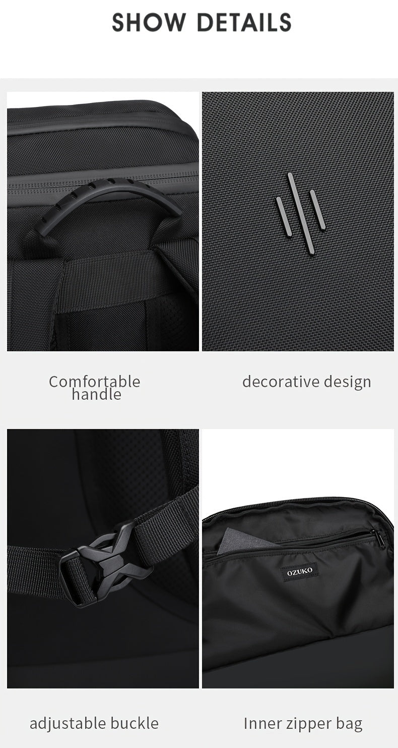 Material: Oxford Operation Instruction: Hand Wash, Do Not Dry Clean Brand: OZUKO Shoulder Strap Length: 100cm Battery Properties: Without Battery Rechargeable Battery: No Size: 50cm x 33cm x 16cm