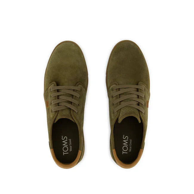 Suede upper with perforated detailing. TOMS leather products support responsible manufacturing via the Leather Working Group.