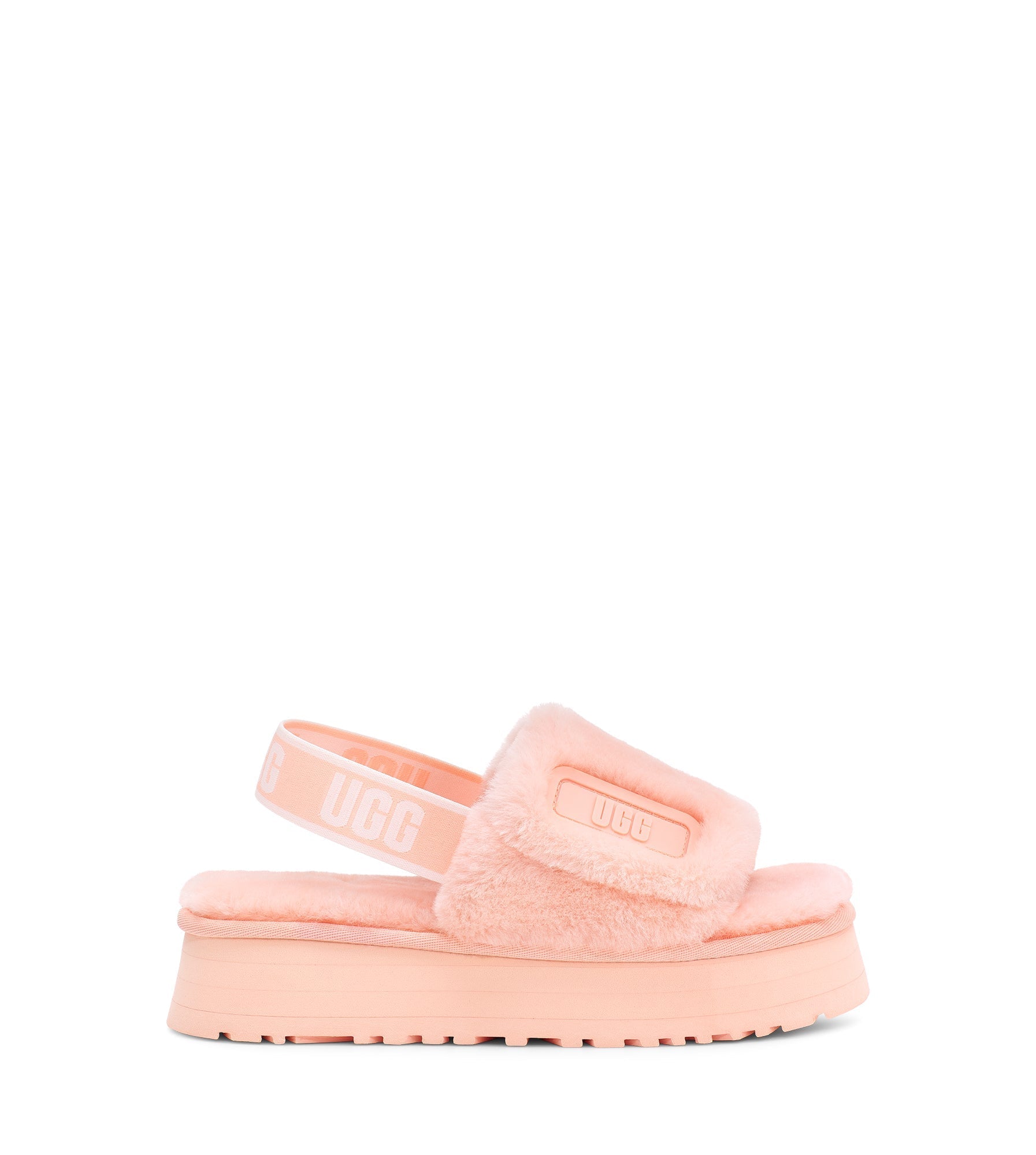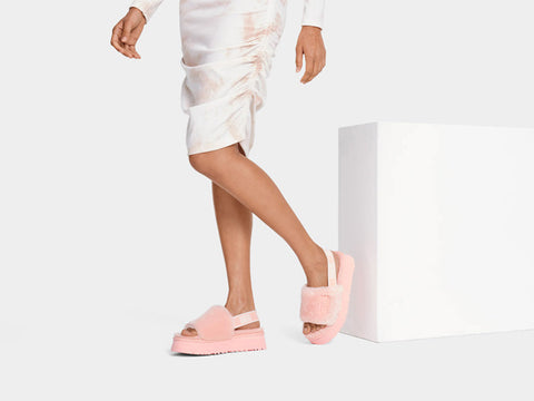 Featuring cozy fluff and retro-style platform soles, the Disco Slide stands out with ease. A fun statement slip-on, this head-turning silhouette is crafted with a logo-embellished elastic backstrap and our ultra-soft sheepskin. The elevated sole is made from layered EVA foam, offering all-day cushioning, indoor-outdoor versatility, and a leg-lengthening look. Wear yours with boyfriend jeans, midi dresses, or track pants and a colourful tee.