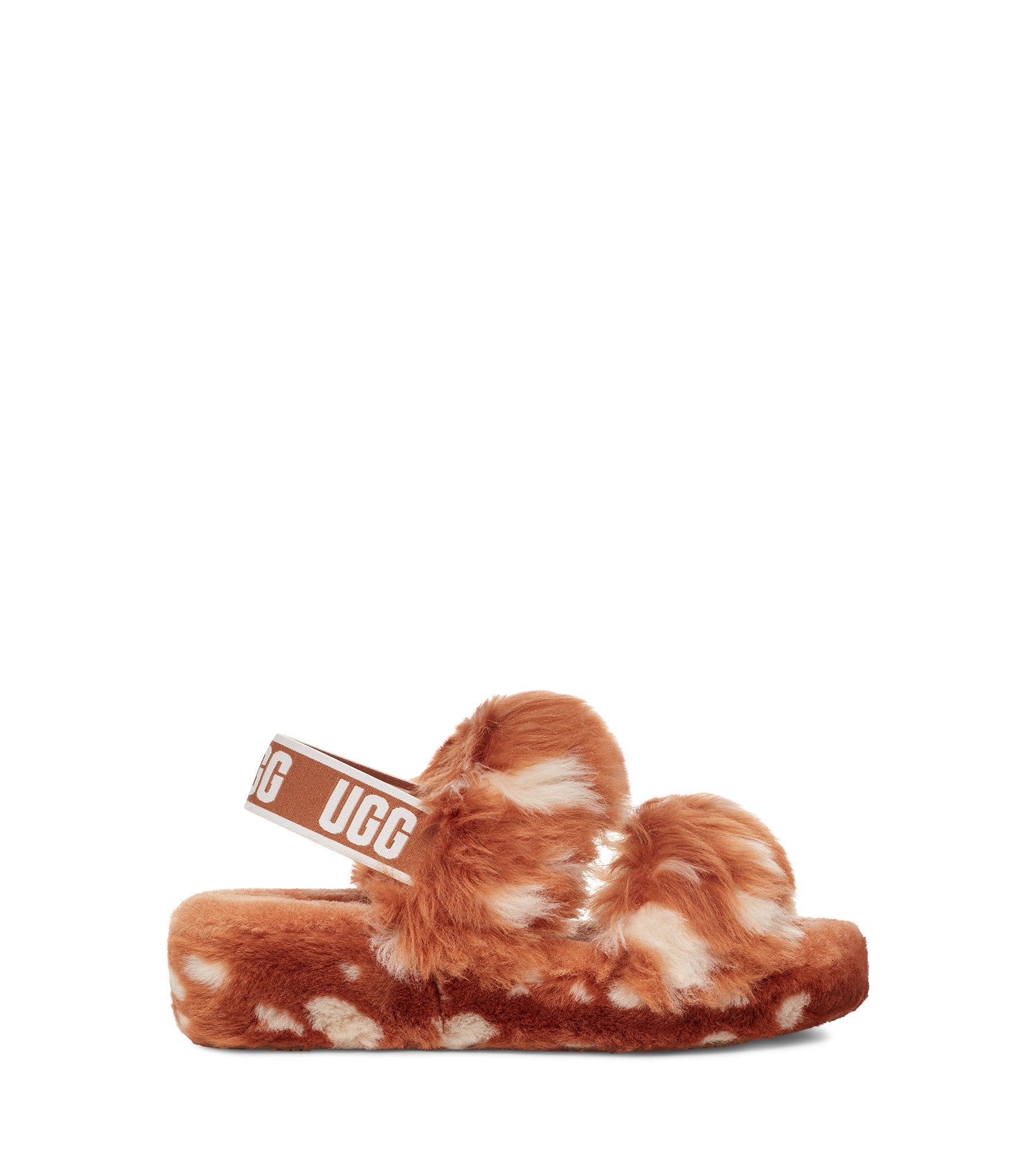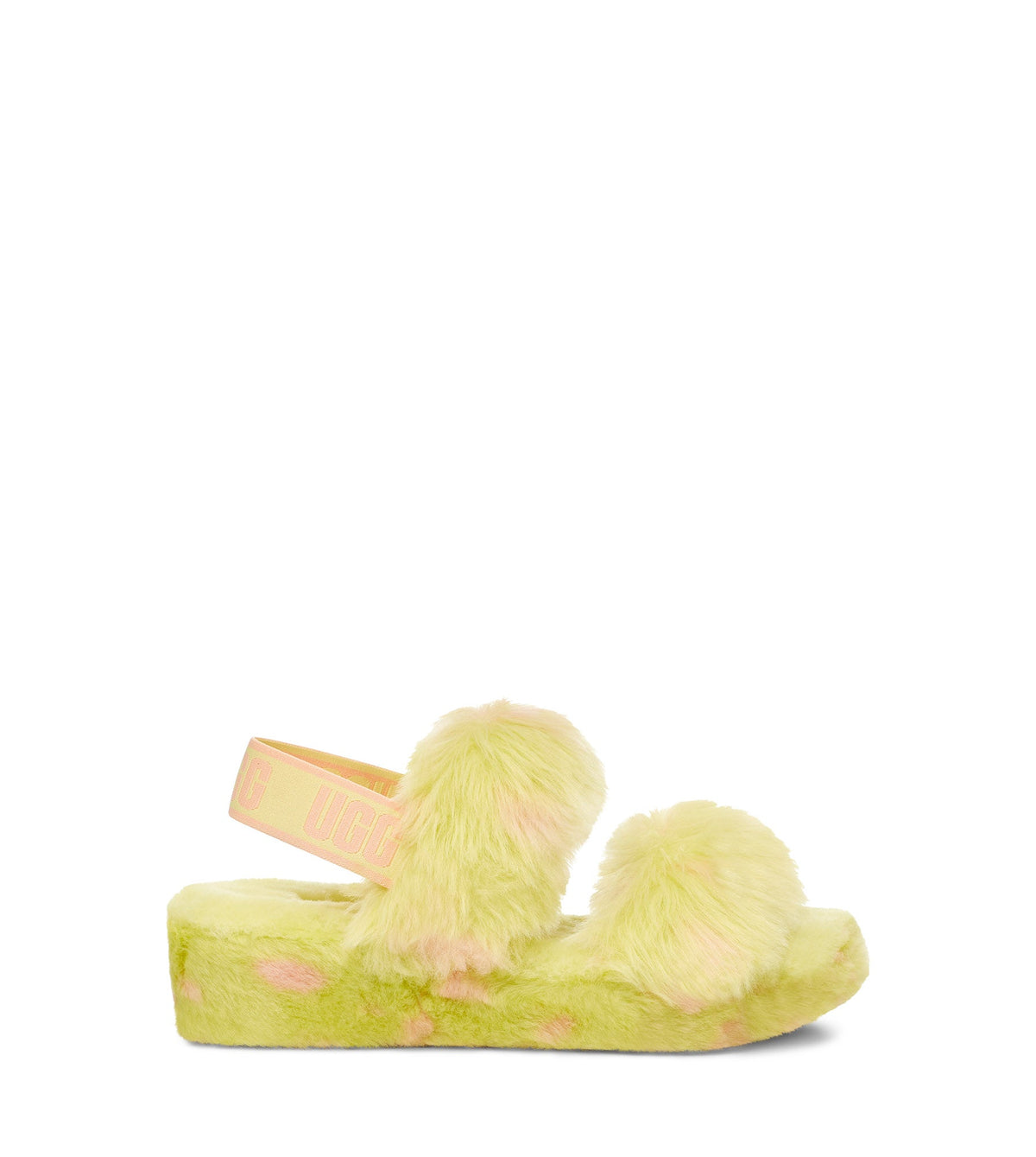 Updated with playful spots inspired by the animal print trend, the Oh Yeah evolves our iconic Fluff Yeah Slide with a strappy silhouette for warm weather. Featuring soft fluff and a versatile outdoor outsole, it's just as easy to slide into and equally cozy indoors or out.