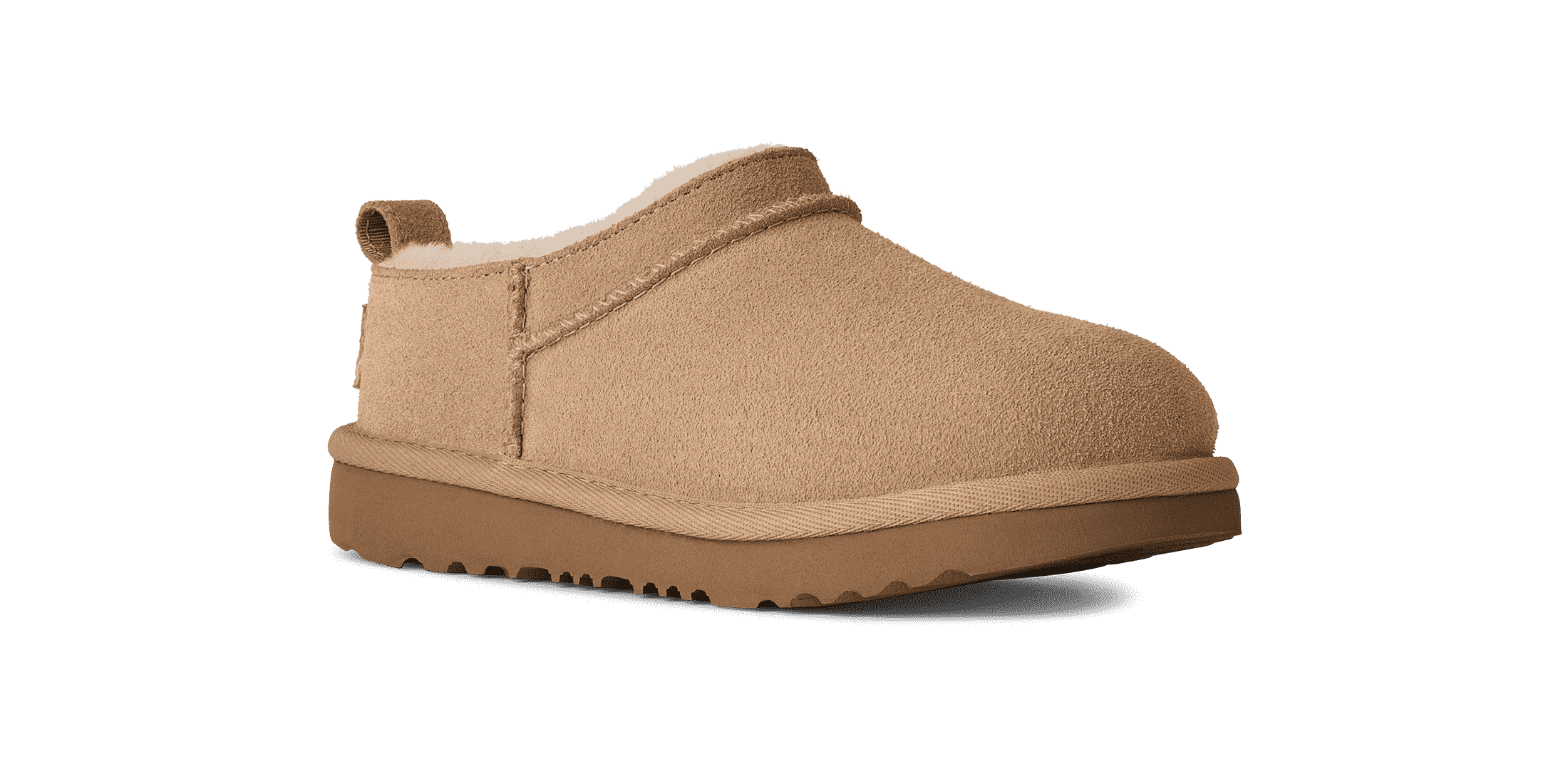 Updating our Young Ladies Ultra Mini with a lower profile for an even bolder look, It has a genuine suede upper and the lightweight sugarcane EVA outsole delivers effortless support and adds that east slipper feeling to every out-of-the-house venture." to original product description.