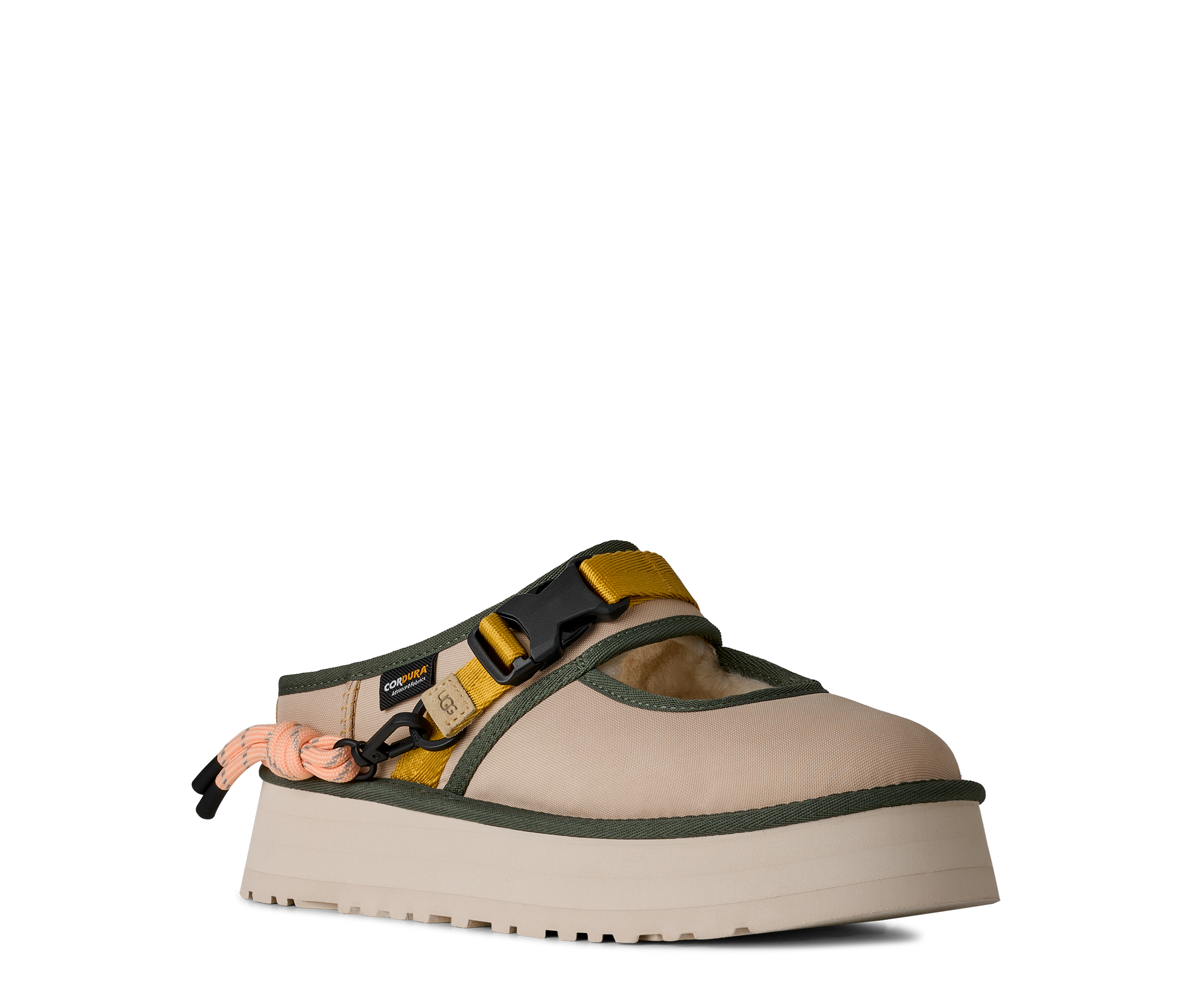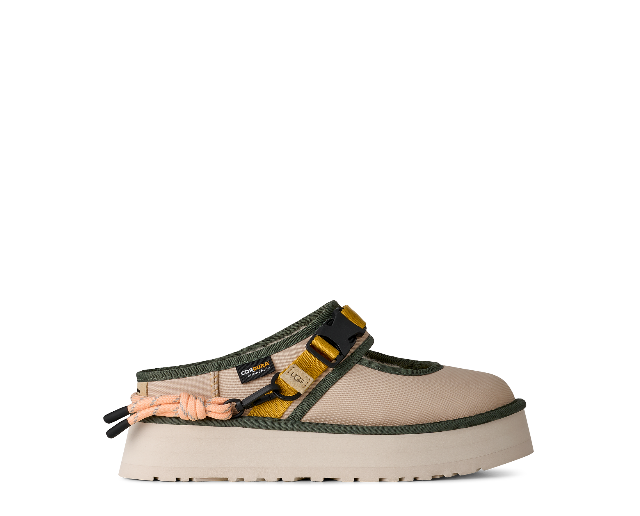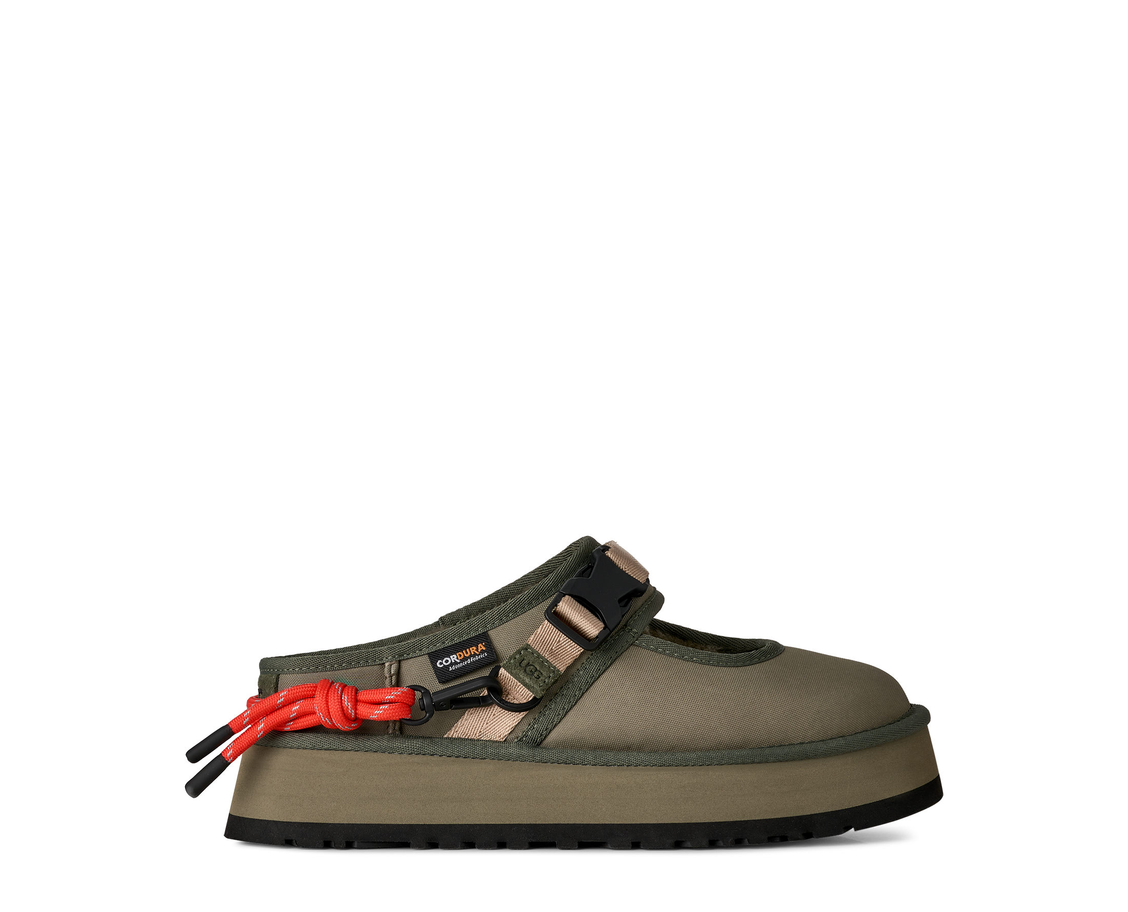 When gorpcore and UGG® collide. Our Bea Mary Jane Wildwood is a reimagined version of our essential Bea Mary Jane, full of details to make you feel like a woodland wanderer. We built it with a 100% recycled CORDURA® EcoMade upper, a metal buckle, decorative lace detailing, and an adjustable webbed strap. Inside, you'll find The Feel of UGG® with our sheepskin lining and our UGGplush™ insole. Finished off with an ultra-lightweight sugarcane EVA platform outsole, it's ready to slip on and head into the wild.