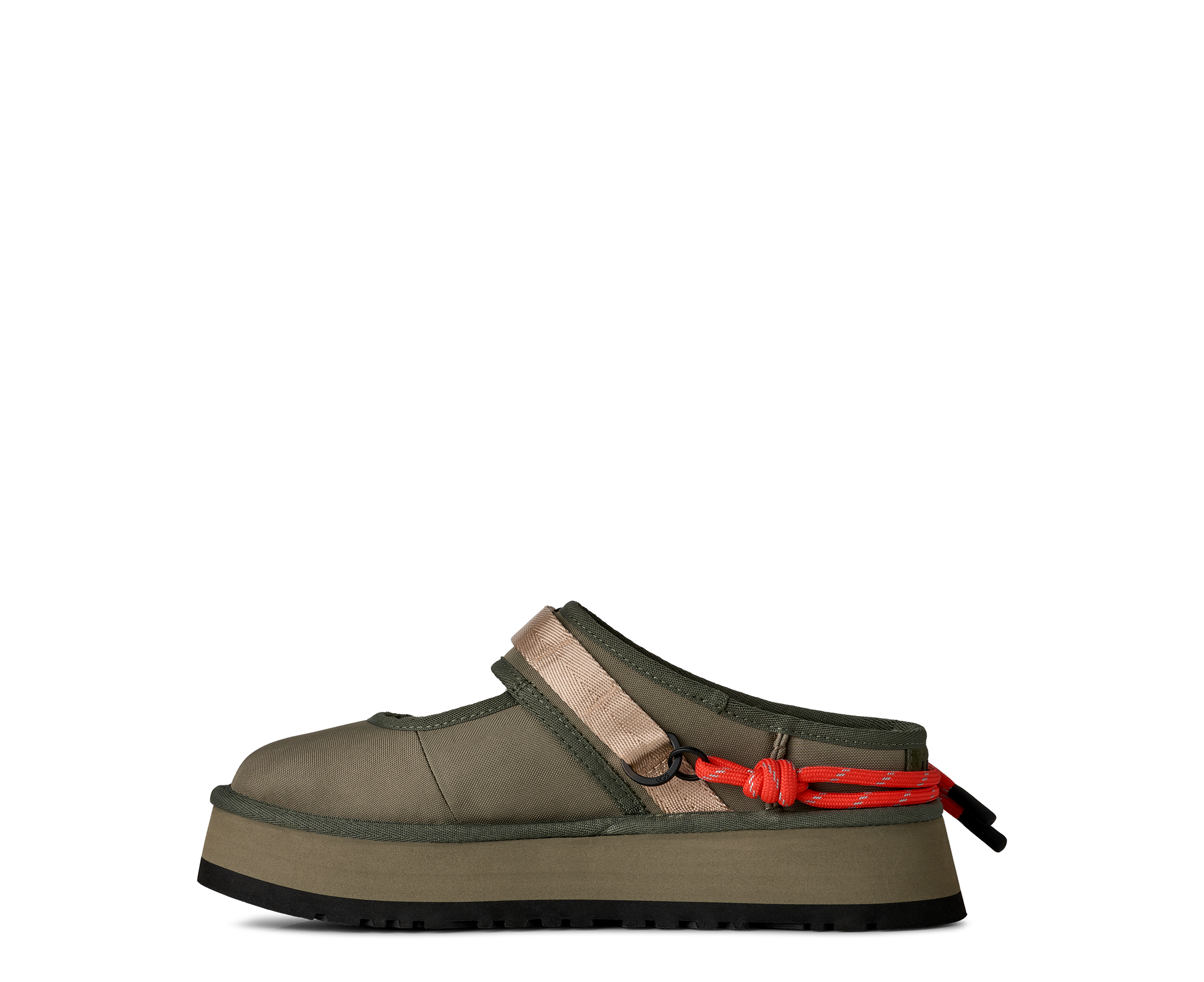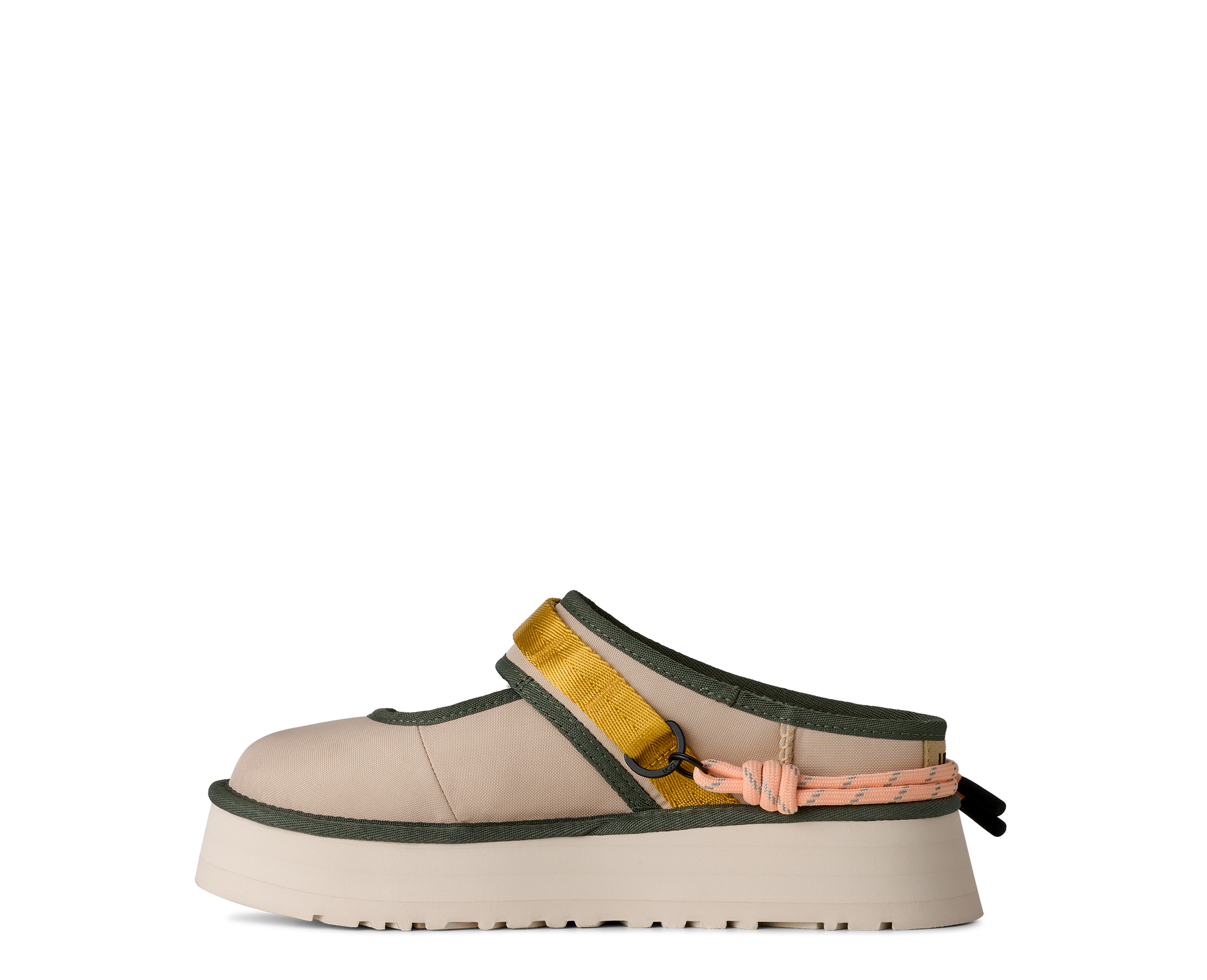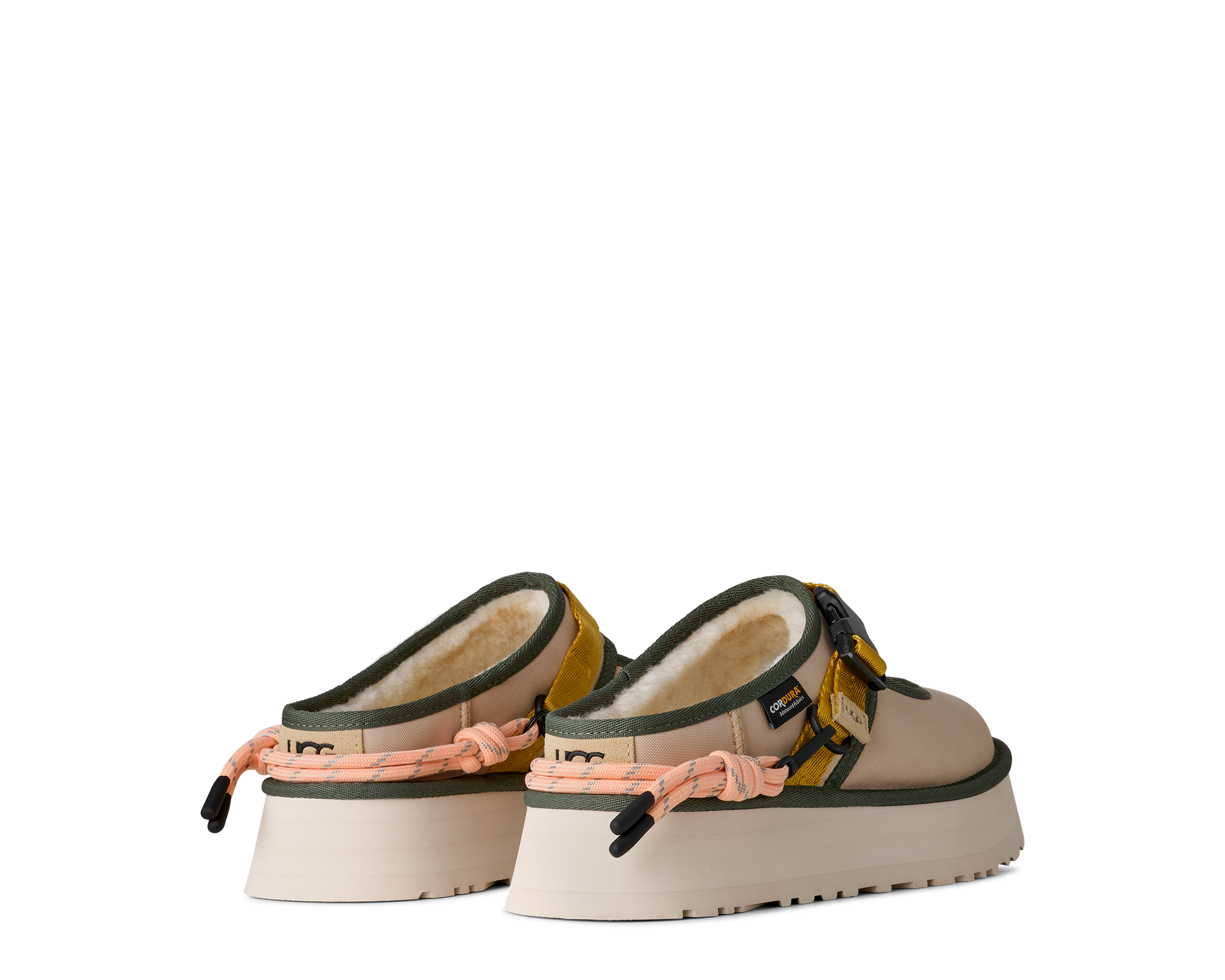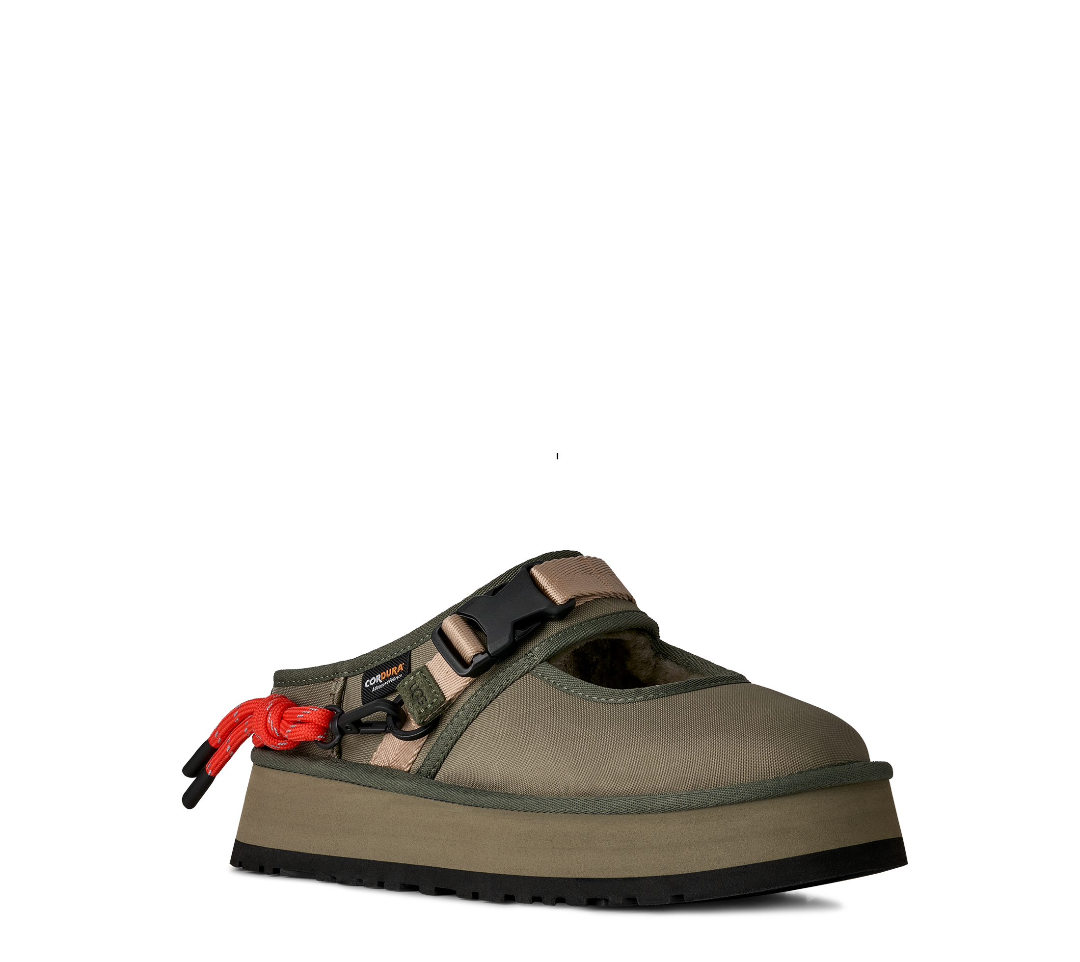 When gorpcore and UGG® collide. Our Bea Mary Jane Wildwood is a reimagined version of our essential Bea Mary Jane, full of details to make you feel like a woodland wanderer. We built it with a 100% recycled CORDURA® EcoMade upper, a metal buckle, decorative lace detailing, and an adjustable webbed strap. Inside, you'll find The Feel of UGG® with our sheepskin lining and our UGGplush™ insole. Finished off with an ultra-lightweight sugarcane EVA platform outsole, it's ready to slip on and head into the wild.